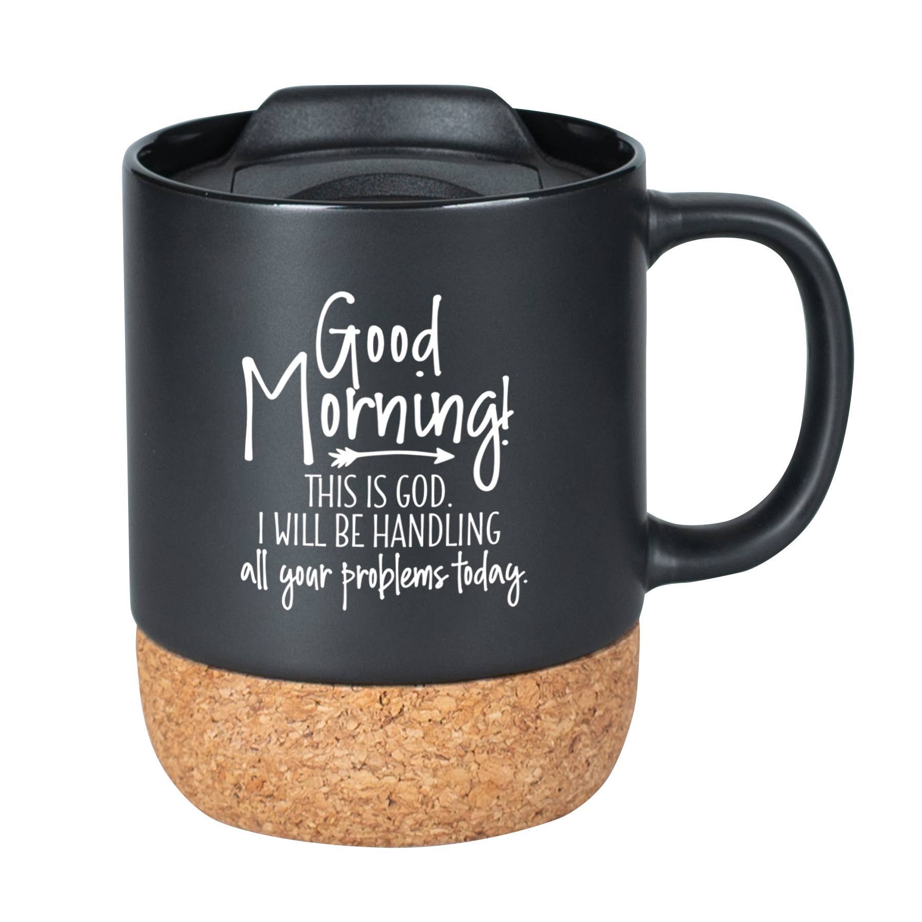 Our Cork Bottom mugs have a natural cork base with a push-on, slide-locking plastic lid and an inspirational verse. Hand wash only, do not microwave. 14 oz Individually boxed. - Styles and Colors may change based upon availability