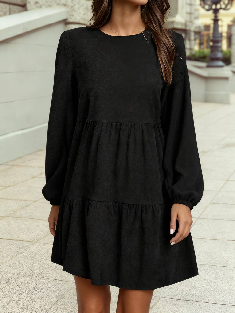 SD1095S SOLID DRESS WITH RUFFLE DETAIL