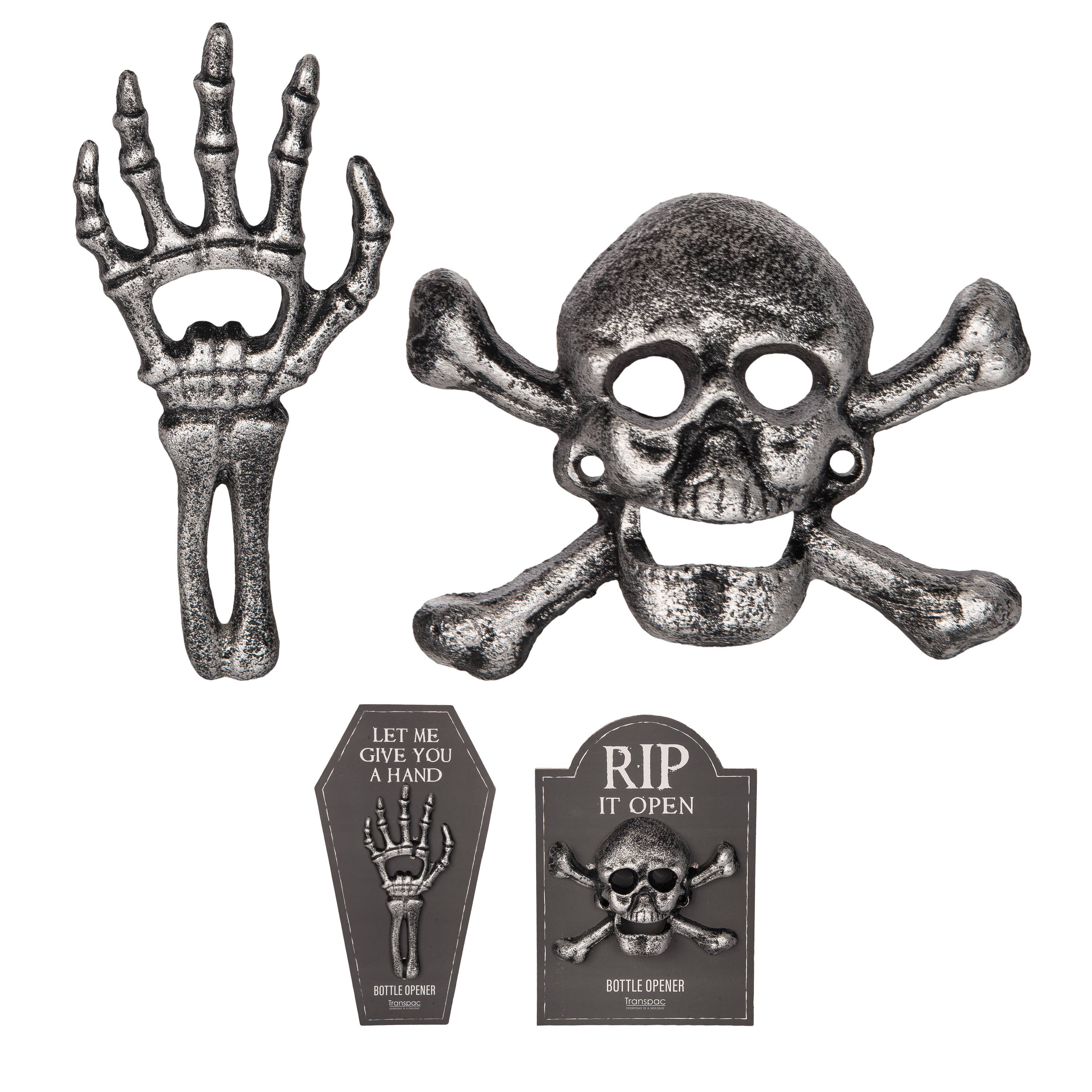 Respect your life and be a legend forever. Open a bottle in style with this Bronze Hand Cast Bottle Opener. Two skulls with bones will Bite through the toughest of Bottle Caps. Teeth marks may be left behind.  MADE IN THE USA