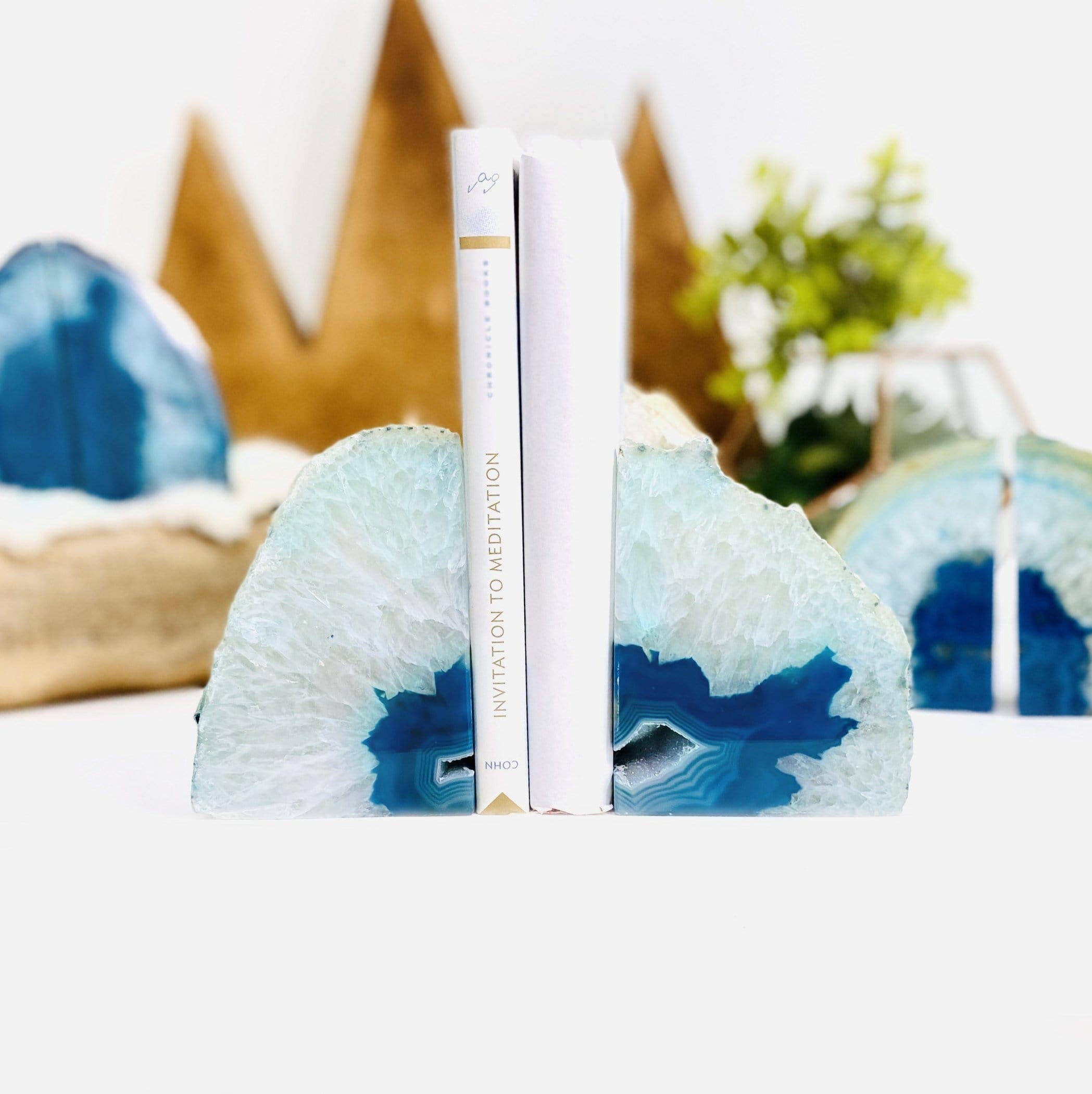 Blue Agate Bookend Pair - 3-6 lb - Geode Crystal Book ends