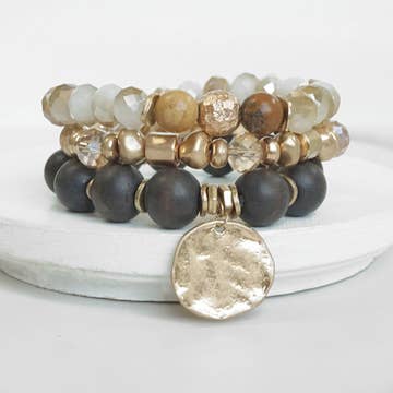 Affirmation bracelets featuring a hand-lettered affirmation focal bead by Audra. Pre-pack includes a 24 random assortment of best-seller sayings in 5 different colors. Stretchy to fit most wrists. We do not accept requests for words/phrases or colors for pre-packs. If you want specific words/phrases or colors, you will need to order them in individual cases. Prepacks are ready to ship and save you $1 per bracelet. (Pre-packs will ship with the rest of your order within our current stated lead time if they are ordered with other items that need to be made.) Can be ordered separately. Find the listing in the Affirmations Collection here: https://www.faire.com/product-based-collection/pbc_swakhy68me