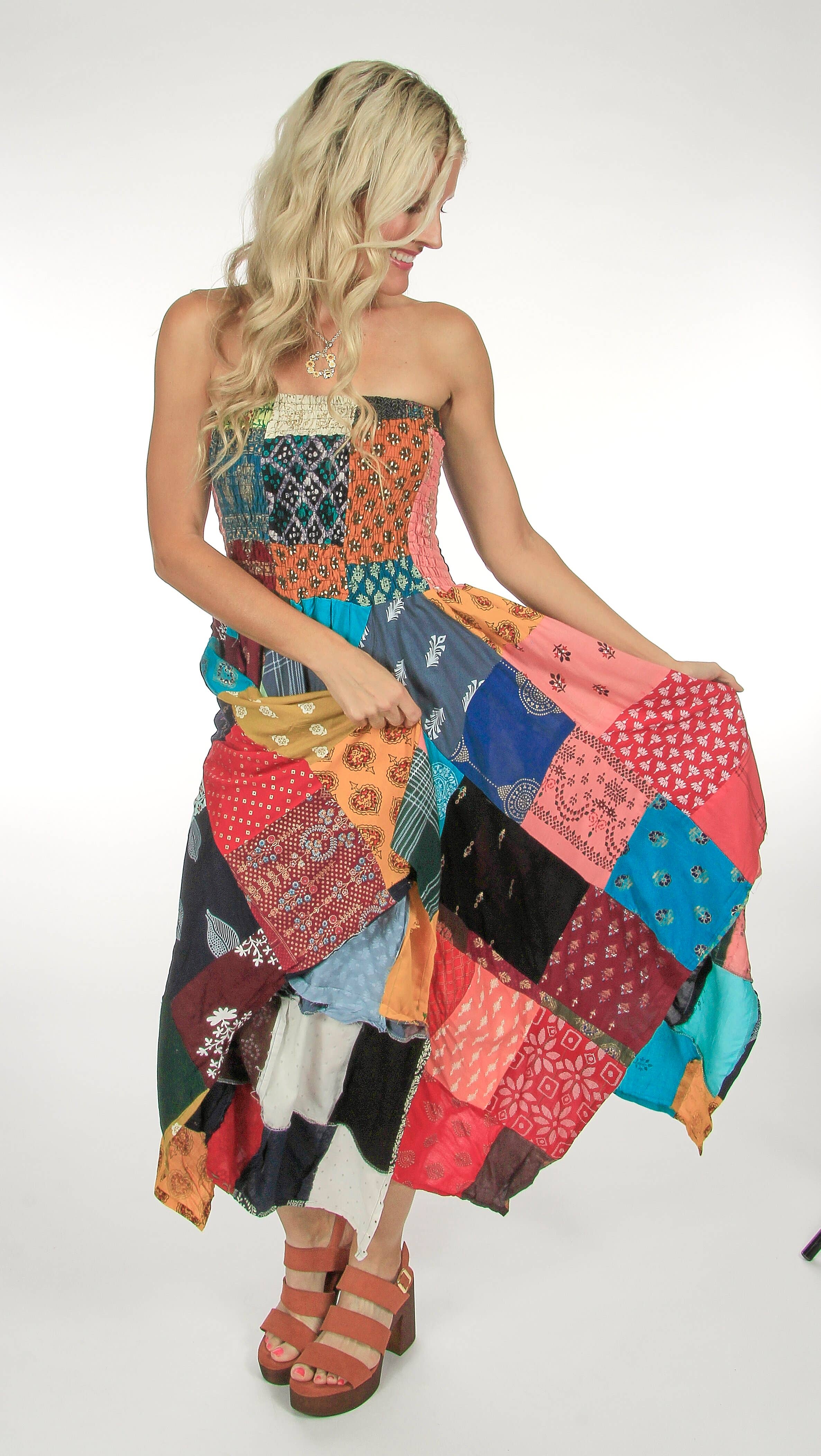 You can lounge at home in the cool comfort of 100% cotton or make the festival news as a fashion icon in these must have harem pants. The vivid patterns of patchwork design are detailed with gathered elastic ankles, a high smocked, stretch waist and completed by generous front pockets! Each pair is its own unique design!! Patchwork Pants, Elastic Waist, Front Pockets, 100% Cotton, Assorted Designs