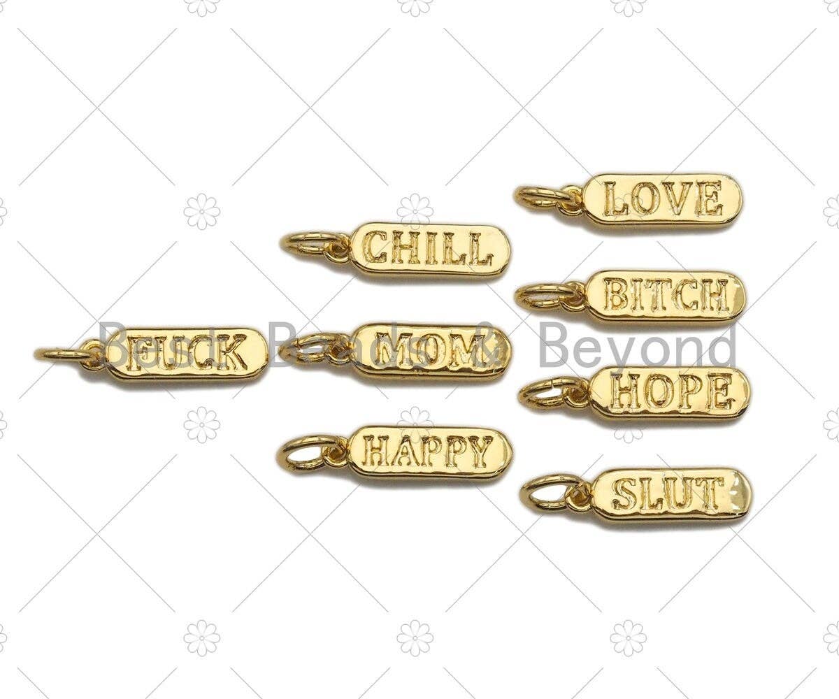 Engraved Word Charms Gold Filled DIY Jewelry CP1224
