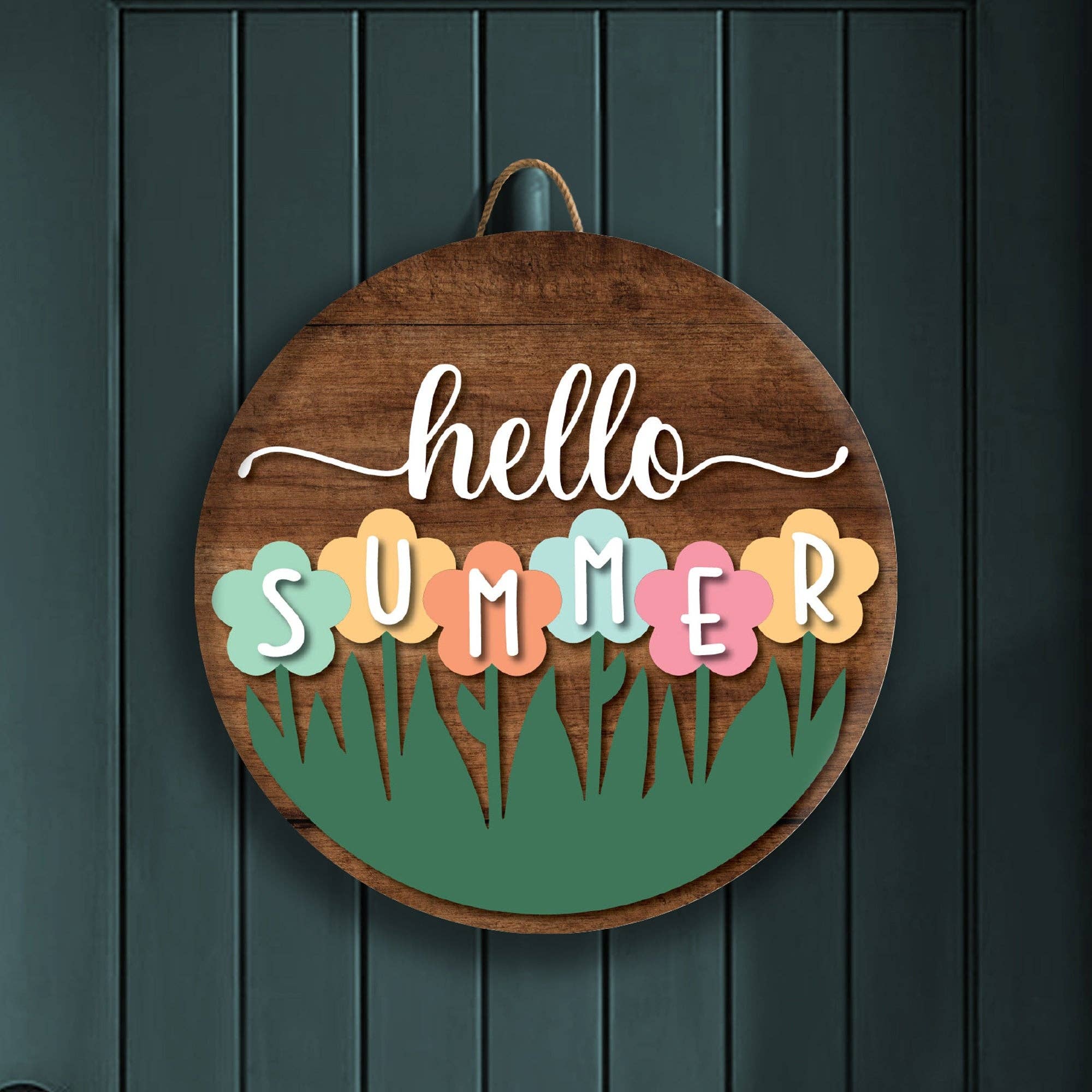 15” wooden circle door decor....these can be used on your front door, child’s bedroom, perfect for teachers gifts, neighbors, friends!!! It does come with drilled holes and twine to hang