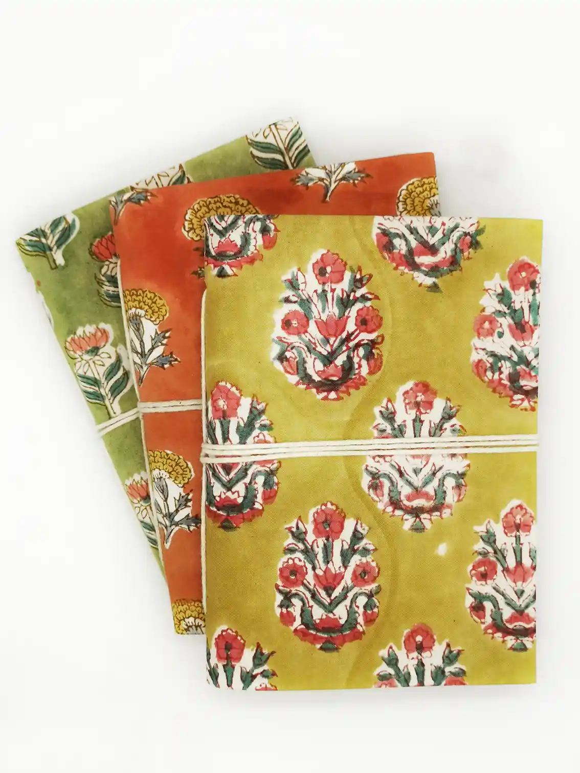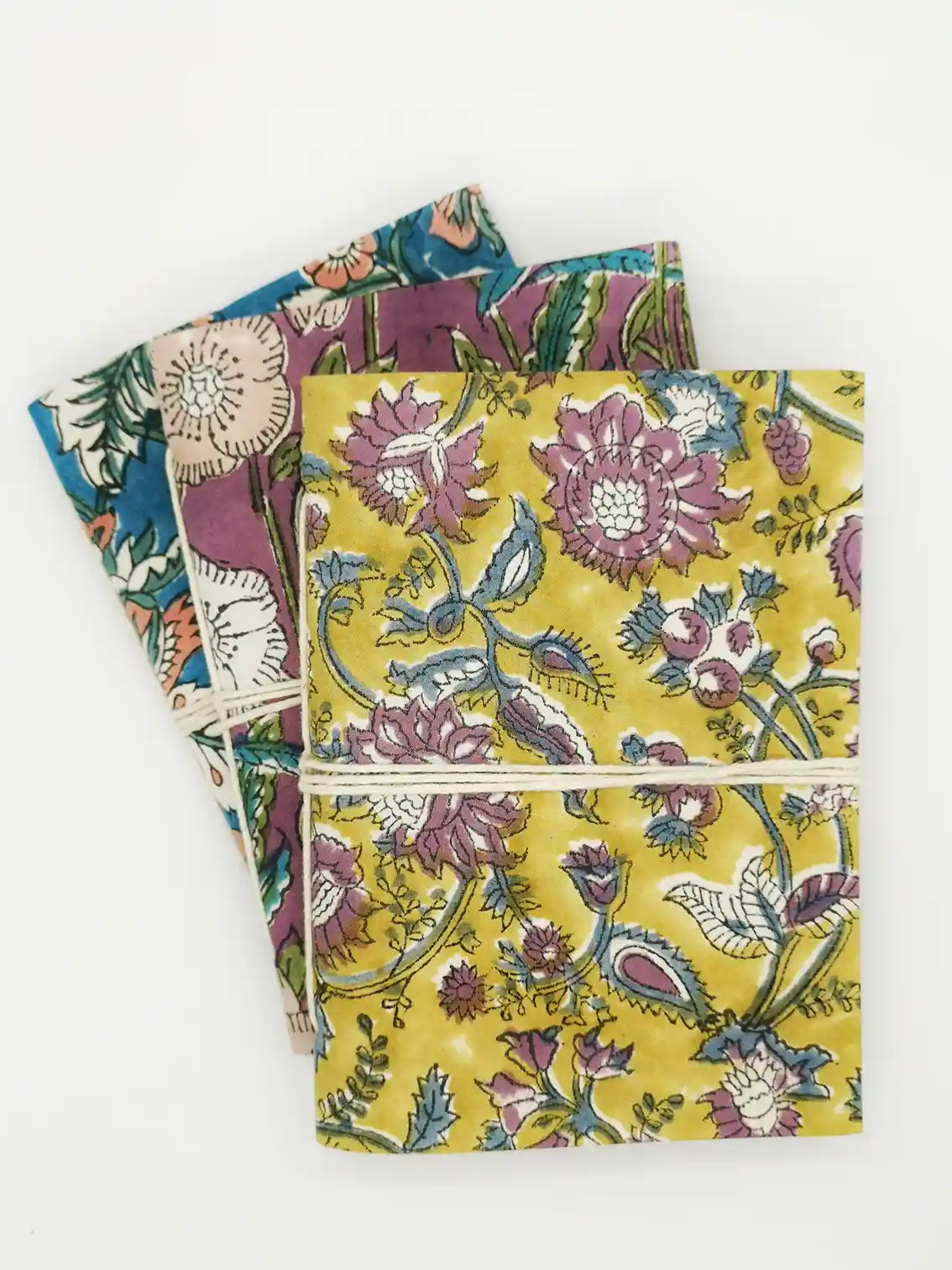 Handmade in India, this Indian fabric notebook uses the age-old technique of blockprint. The pink flower patterns stand out beautifully against the apple green background, creating a floral notebook that is as vibrant as it is original. Three practical formats A6 (10 x 15 cm): Compact and easy to carry, this A6 novelty notebook is perfect for taking notes on the go. 12.5 x 18 cm: An intermediate size, ideal for quick notes or sudden ideas, this fancy notebook is both practical and stylish. A5 (15 x 20 cm): For those who prefer more space to write or draw, this fancy A5 notebook offers the perfect canvas for your creations. Each notebook contains 96 pages of recycled cotton unlined paper. A cord ties the notebook.