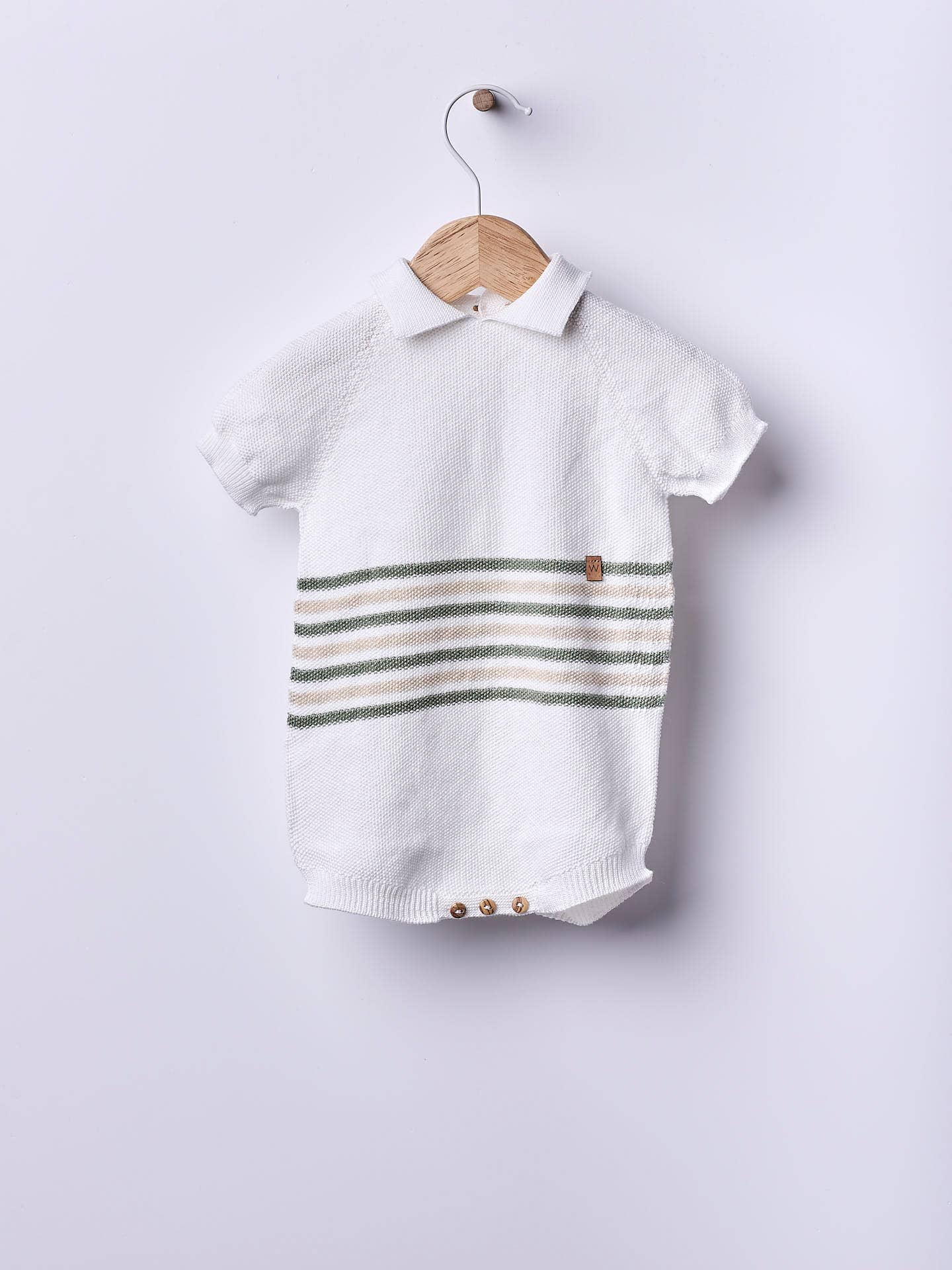 Cap sleeved dress knitted in a beautiful soft cotton, great for baby girls, up to 4 years. FRIENDLY VIBE knitted dress fastens at the front with wooden buttons. Produced in Wholegarment, seamless one piece, for your baby's maximum comfort.