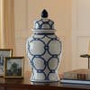 Ceramic Rope Temple Lidded Decorative Jar - Blue, 14 in.