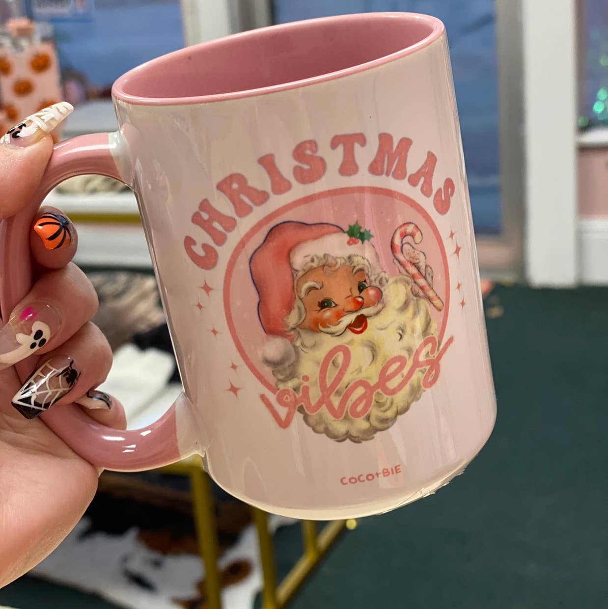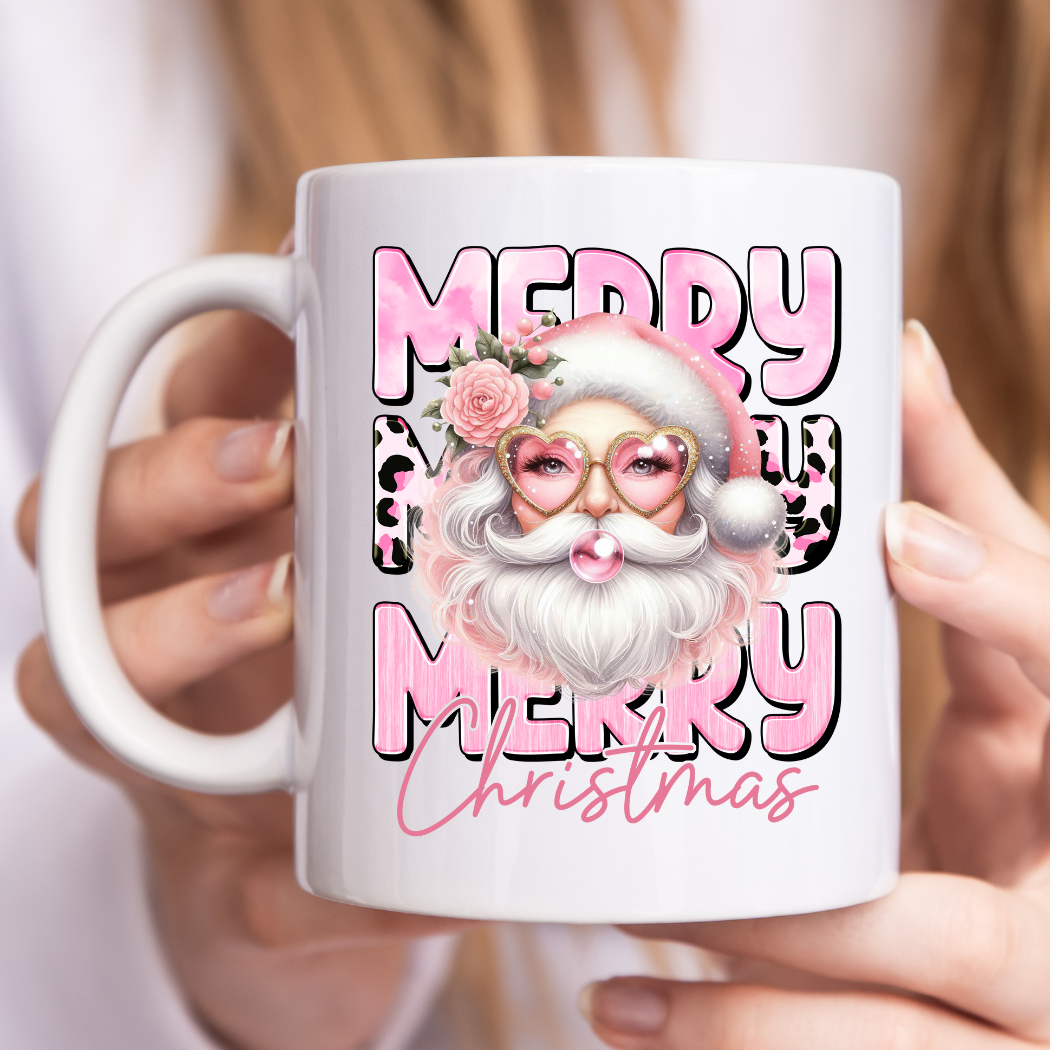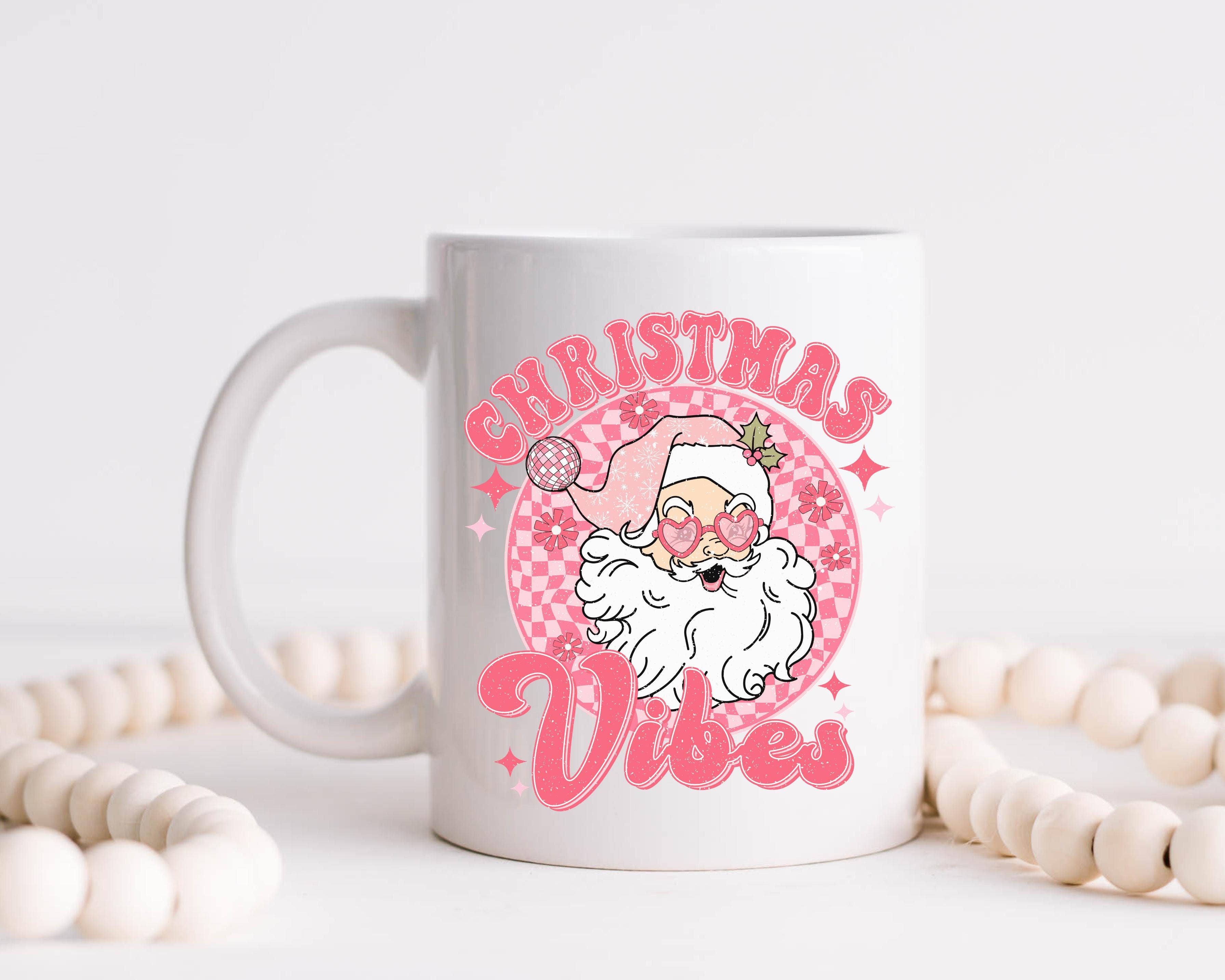 Each mug is made in our home studio. We use a high-quality heat transfer process that adheres specialty inks to each mug. Unlike vinyl or markers, this produces a permanent, long-lasting image that will not fade, peel or rub off. DETAILS + 15oz - LARGE Mug + Ceramic + Dishwasher Safe + Microwave Safe + Image printed on both sides + Made in Flesherton, Ontario Christmas Vibes 15oz Mug - Christmas, Santa, Retro, Pink, Cute Santa, Cute, Holidays, Happy Holidays, Gift for Her, Pink Santa Mug