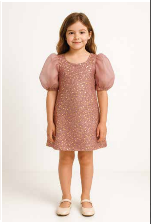 Shine like a star in this glamorous Ruffle Slv Sequin Dress! Covered in shimmering golden sequins and featuring playful ruffle sleeves, this dress is pure sparkle and fun. Perfect for celebrations, parties, or any moment when you want to feel absolutely fabulous, it brings instant glamour and personality to your look. The eye-catching sequins catch the light beautifully while the ruffled sleeves add a whimsical touch. A show-stopping piece that celebrates your love of sparkle and style!