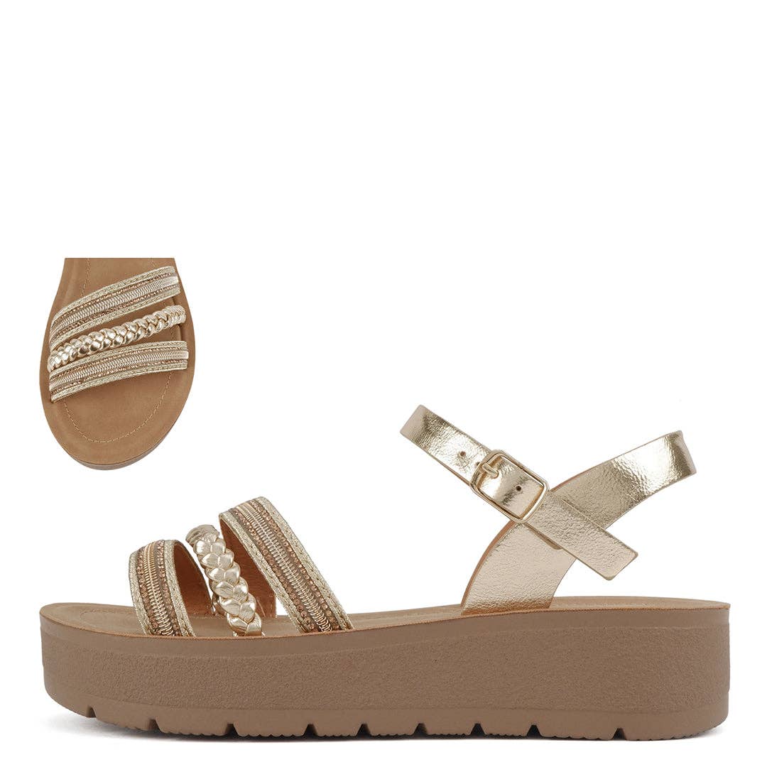 Soda SEEDS Women Espadrille Cork Sole Braided Strap Sandals