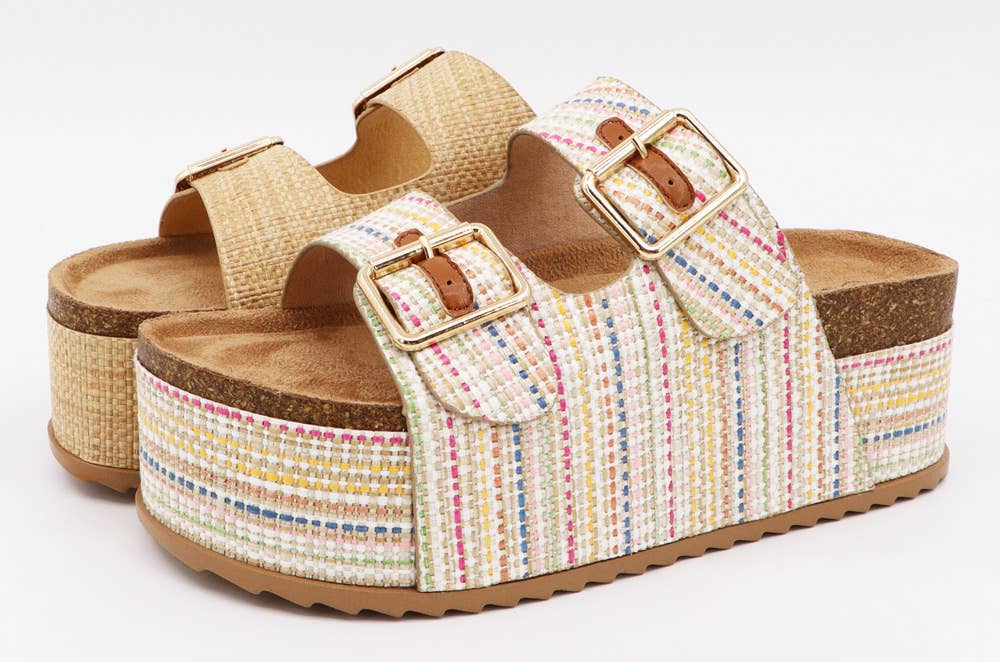 Bamboo Thick Cork Platform Double Buckle Strap Sandals