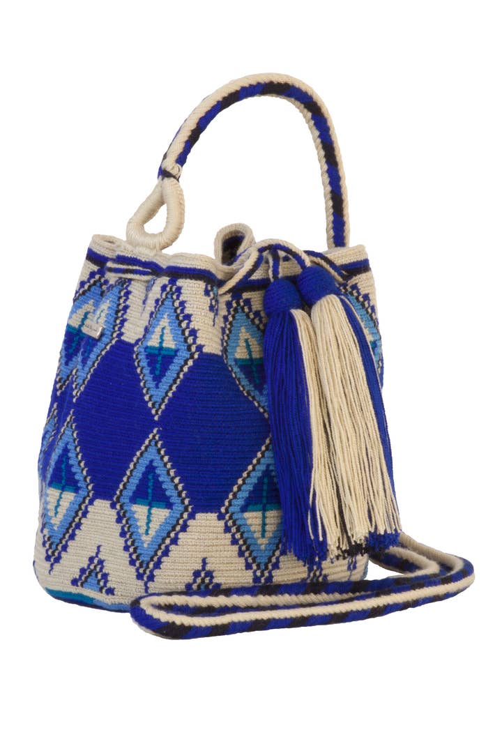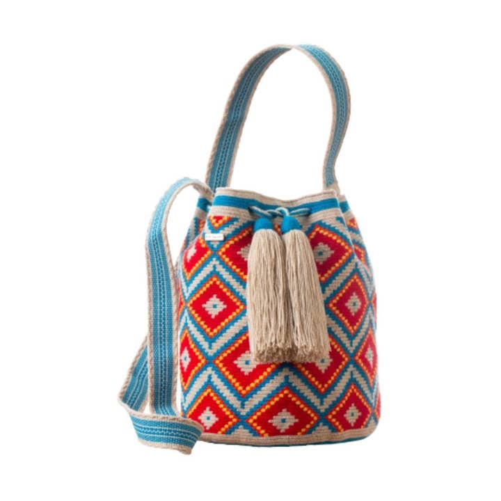 Mini Bag The rich cultural heritage of the Wayuu is carefully woven into each mochila. These one thread Wayuu bags are crocheted by hand through traditional techniques that have been passed on from generation to generation. The process can take over 3 weeks to complete, resulting in an object that is not just a bag, but a reflection of deeply rooted traditions and values. On the surface, the bucket-shaped mochila features bold and bright patterns that are designed by the Wayuu people. Each mochila has a unique, natural and bohemian appeal. DIMENSIONS: Bag: 7 x 6.3 inches / Strap: 47″ Bag: 18 cm x 16 cm / Strap: 120 cm Our products are 100% handmade. They might be slightly differ from the original dimension. MATERIAL: Acrylic PRODUCTION TIME: 3 to 6 weeks