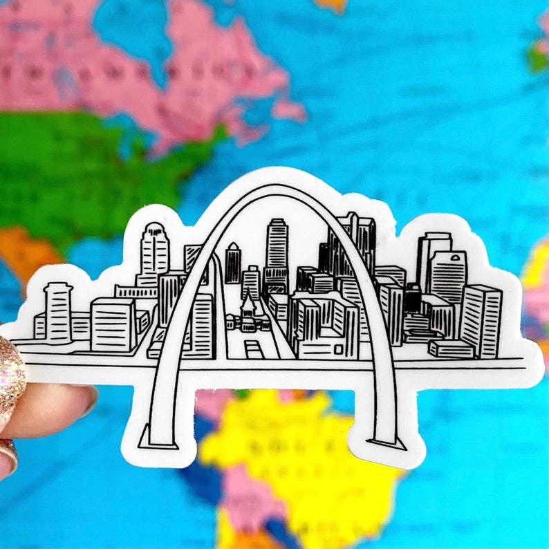Wanna show off your STL pride? Try out our toasted ravioli Saint Louis sticker that will impress any real St. Louisan, whether you’re putting it on your laptop, phone, water bottle, or journals! Made with the same custom, hand-drawn font as our logo, we wanted to create something unique that honors our favorite city, Saint Louis! 5% of sales go to Metro Trans Umbrella Group in Saint Louis, Missouri Created by a Queer Women-Owned Business in Saint Louis Size: 2.6"x2.6” Glossy Vinyl Sticker Recommended Care/Usage: Weatherproof and Waterproof. Not intended for dishwasher use or prolonged submersion. If applied on water bottles, we recommend hand-washing. Apply sticker on a clean, smooth, flat surface. Moving sticker after initial application may result in a decreased adhesive quality.