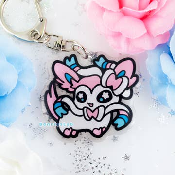 Pokemon fanart keychain. These cute OG Pokemons are enjoying their Pokeball ice cream cone! These charms are double-sided. Charm Size: approx. 1.75 - 2.5 inch Material: Glitter Epoxy Resin