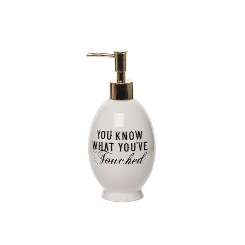 Introducing the "Wash Your Damn Hands" Soap Dispenser, a stylish and functional addition to your everyday handwashing routine. Crafted from high-quality ceramic, this dispenser not only looks great on your tabletop but also encourages good hygiene practices in a fun and cheeky way. **Product Features:** - **Material:** Durable ceramic for long-lasting use - **Design:** Eye-catching white finish with a humorous message - **Capacity:** Holds up to 12.5 oz of liquid soap - **Functionality:** Easy to refill and dispense soap with a simple pump - **Versatile Use:** Perfect for kitchens, bathrooms, or any tabletop - **Encourages Hygiene:** A playful reminder to wash your hands regularly Make handwashing a delightful experience with this unique soap dispenser. It's not just a functional item; it's a statement piece that adds personality to your space!