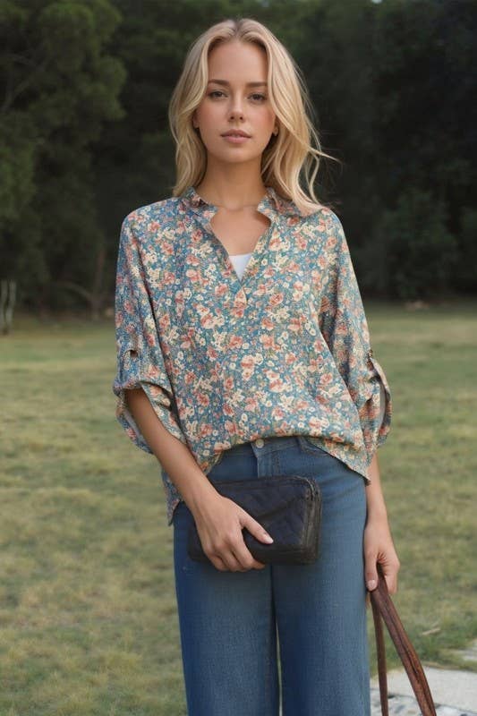 The Frolic is our take on an easy and feminine button down. This top features pleating along the shoulder, a double button front and a cropped button sleeve. - Button down - Rounded hemline - Designed in Austin | Made in Los Angeles