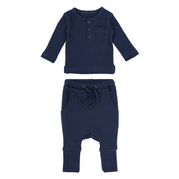 Our organic knit combo is the perfect way to show off your little darling. * 100% organic cotton * two-piece knit essential * front pocket detail + decorative tie at waistband + buttons along the shoulder for easy on and off * lead, phthalate, and flame-retardant free * GOTS certified; the leading environmental standard for organic textiles * machine wash; tumble dry low Personalize It: For a unique touch, add an embroidered letter on the left chest of the knit top for $15. Due to extremely high volumes, embroidery orders may see a delay in processing of up to 15 business days.