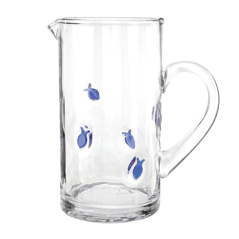 Office Objets - Wholesale Pitcher - Vintage white pitcher with stylized blue vegetal frieze H17.51