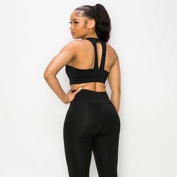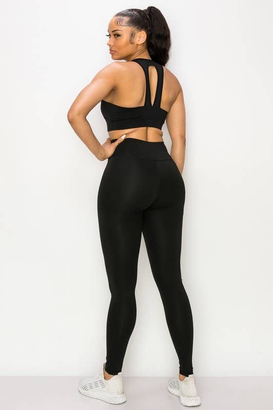 Wholesale La Belle Fantastique Aura | Solid color padded hollow vest high waist stretch slim yoga sport two-piece set