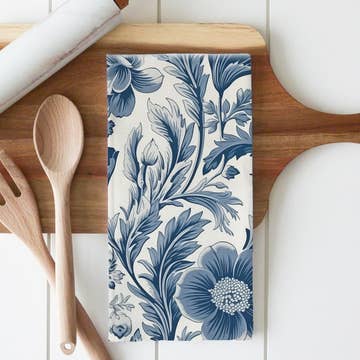 The Edisto Collection Tea Towels bring timeless design and vintage-inspired charm to the heart of the home. Each towel is crafted from 100% cotton and printed with patterns inspired by traditional hand block prints, reimagined for the ease of modern coastal living. The collection includes four distinctive motifs: Alisa – a stylized pomegranate pattern, fresh yet rooted in vintage design. Daisy – delicate sky-blue florals that add a hint of antique charm. Elodie – a marigold design that brings warmth and timeless appeal. Henrietta – petite fleur blossoms in soft sky blue, refined and graceful. Measuring 18" × 30", these decorative tea towels are designed to be layered, styled, and gifted. Drape one over your oven handle, brighten a bread basket, or use it to wrap a thoughtful gift. More decorative than utilitarian, they embody the nostalgic, collected feel of Coastal Grandma and Grand Millennial style. Perfect for holiday gifting, hostess presents, or housewarming celebrations, these towels add story and beauty to any kitchen. Durable and machine washable, they soften with use while retaining their vintage-inspired character. Approx. 18" × 30" 100% Cotton Designed in Massachusetts, Crafted in India Machine Washable Decorative Kitchen Accent + Gift-Ready