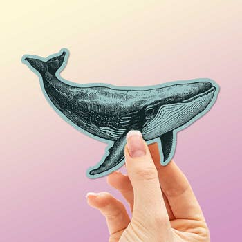 You're killing it, whale! Holographic vinyl sticker, approx. 3.5" long. • Sticker says, "Killing It" • Holographic • Die cut, vinyl sticker • Approximately 3.5" long • Durable, waterproof, appropriate for outdoor use and dishwasher safe • Made in the US. • Artwork by Meghan Hopkins Sokorai