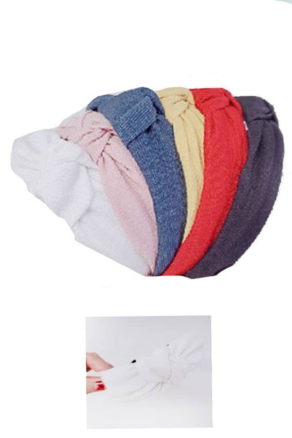 Shimmery Crinkle Satin Turban Twist Front Knotted Hard Shell Head Band -Assorted Color (2-Black, 2-Mint, 2-Peach, 2-Beige, 2-Rose Pink, 2-Red) -100% Polyester -CA Prop 65 Advisory