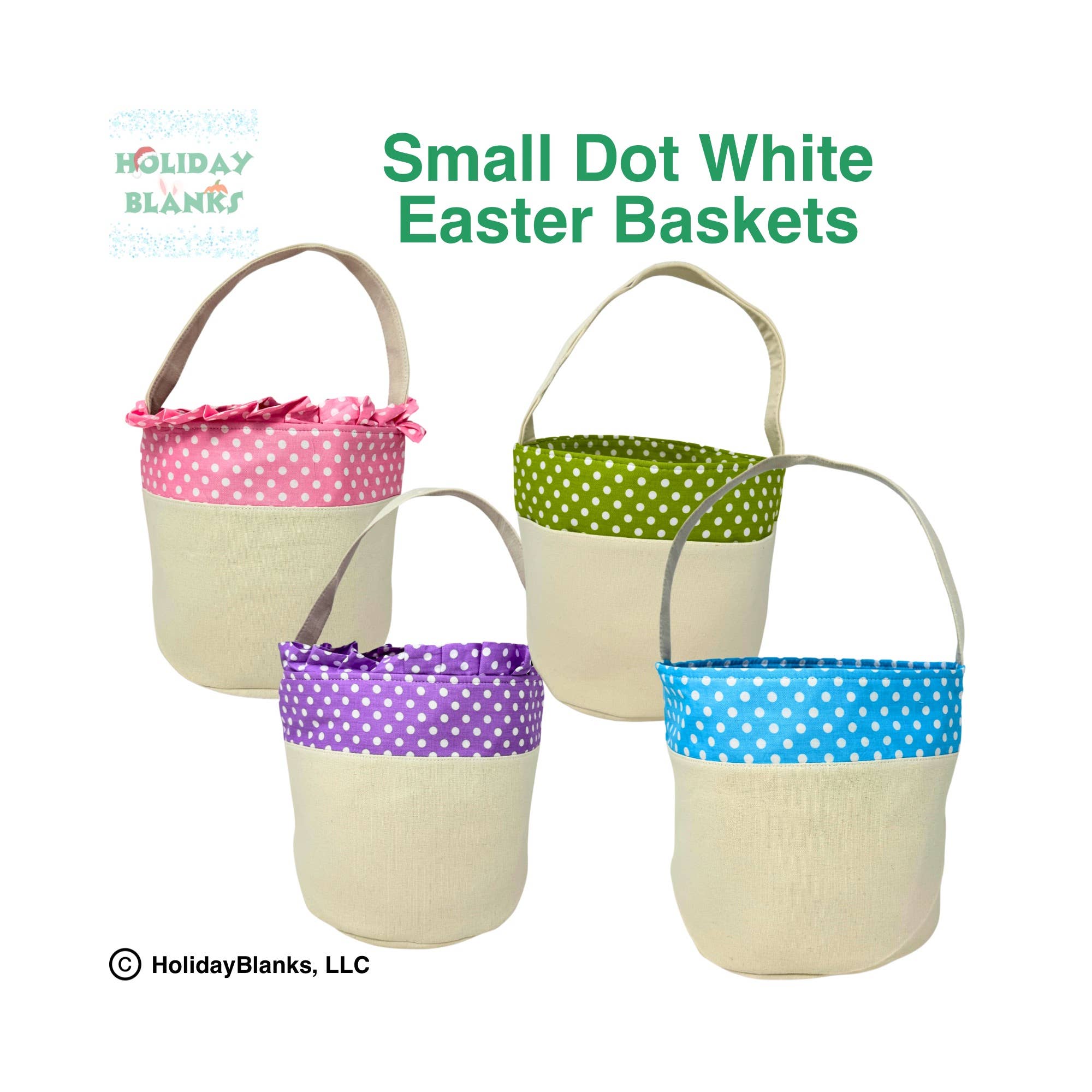 These baskets are perfect for embroidery businesses looking for high quality baskets, at affordable prices, shipped fast from the USA. These baskets are ideal for Easter or Halloween projects or products. They are also nice enough to be sold as an undecorated product by retailers and small businesses. These baskets are manufactured to Holiday Blanks specifications. We work directly with the manufacturers to create the baskets and have them shipped to our small business warehouse in Newburgh, IN. We typically ship within 1-2 business days. These baskets have a canvas exterior and a soft cloth lining. Handle is stabilized to stand up but can also be folded down for easy storage and more economical shipping. LARGE Generous size - 11" Wide, 9" tall and 6” deep when opened as shown in pictures.
