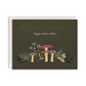 Hand-drawn winter holiday card printed on coated matte 100# cover stock for rich color and a smooth, premium finish. A7 (5×7) size, blank inside, paired with a kraft speckled envelope. Illustrated in Black Moss Studio’s moody, whimsigoth naturalist style featuring Arctic wildlife and seasonal botanicals. Perfect for boutiques, metaphysical shops, gift stores, and winter displays. Details • A7 (5×7) folded card • Printed on coated matte 100# cover • Blank interior • Includes kraft speckled A7 envelope • Designed and printed in-studio (PNW) • Ideal for winter, holiday, and Yule gifting