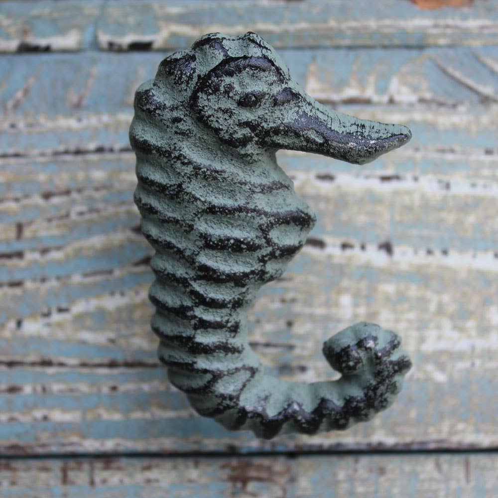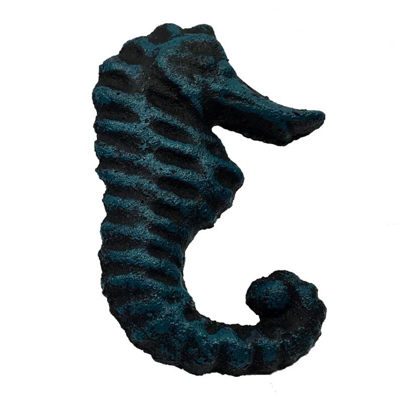 Seahorse drawer pull made of zinc, Patina Copper in Color, Please note the Patina on these are done by hand so each handle will vary.. Approx 2.7" x 1.27". Great for Kitchens, Bathrooms, Furniture or even a Trailer remodel. See #4029, 4026 and 4027 for matching Knobs. Screw Included.