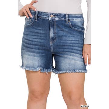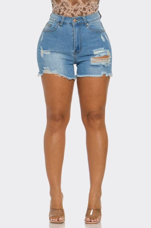 DISTRESSED DENIM SHORT * 100% Cotton. * Hand Wash. * Made in China. * Model is wearig size 1XL Length: 14" Waist: 17" Inseam: 2".