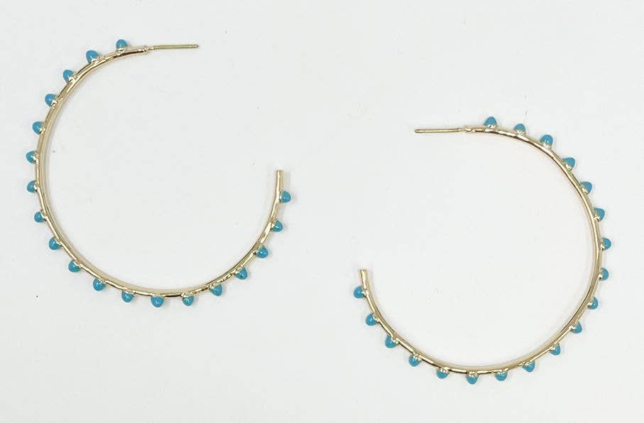 Show off your style with West & Co.'s Worn Silver Turq Trimmed Hoop Earrings. These hoops are a testament to the brand's commitment to trendy, affordable fashion and the American dream that fuels our family-owned business. Designed with all age groups in mind, each piece is unique and radiates a sense of pride. These earrings will enhance any outfit.
