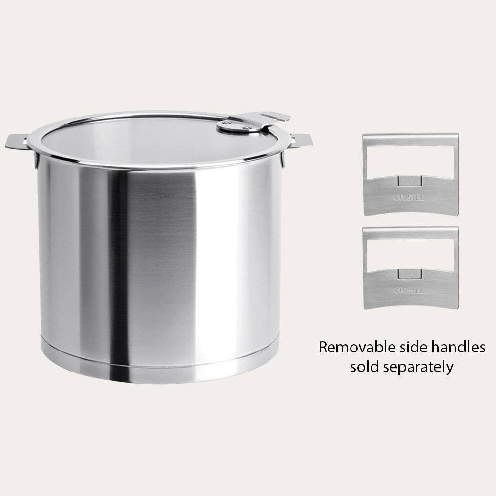 Detachable handles sold separately Stainless steel Deep non-stick frying pan 18/10, brushed finish, detachable handle, with Exceliss® non-stick coating from Strate®collection. A must have in the kitchen, Strate frying pans are available in 2 sizes: 9.5” and 11”. Ideal for cooking fish, eggs and potatoes without sticking. For searing meat, prefer the Deep stainless steel frying pans. Switching the long handles with the side handles, the Strate®Deep non-stick coating frying pan turns into a serving dish. Detachable handles are designed to be used during the cooking process when maneuvering cookware from stovetop to oven or oven to table. For safety, the handles shouldn’t be left on while cooking. While heat-resistant, prolonged exposure can negatively impact the detaching mechanism over time. Certified Made in France, BV Cert. 6019453.