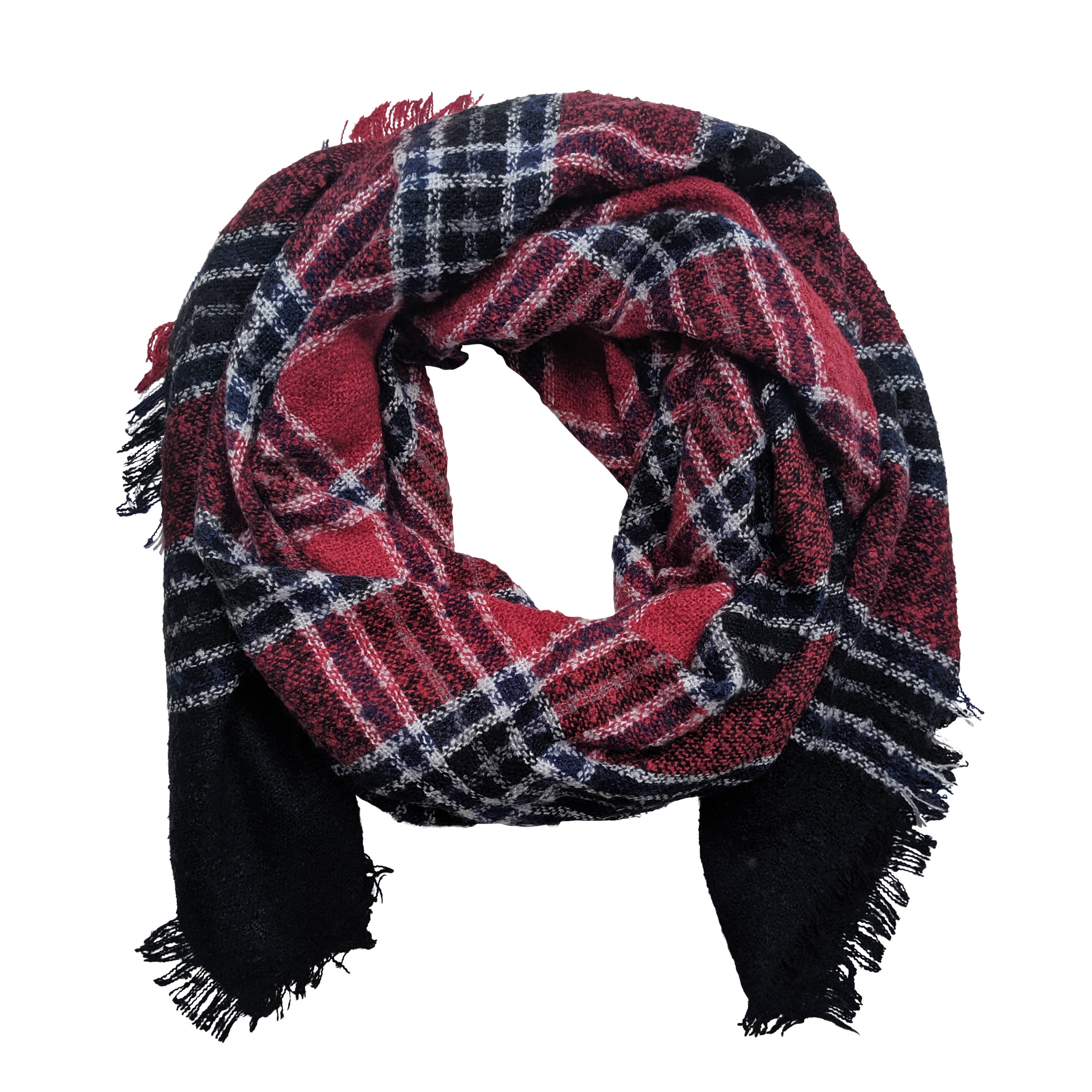 Cashmere Feel Plaid Pattern Scarf - Stylish Plaid Pattern Design - Fringed edges - 100% Acrylic - Perfect for Cold Weather ** One Size: Approx. 13"x72" + 4" **