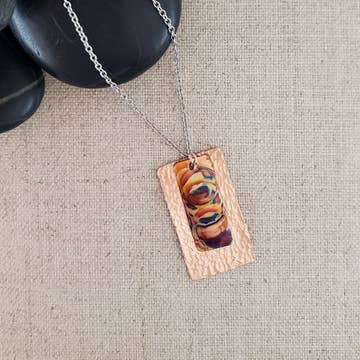 This rad little pretty turns the smallest scrap of surfboard waste into a wearable sun catcher. Never feel far from the surf when you #wearyoursunshine. She's perfect to layer with other Betty necklaces ,or, give her the spotlight worn solo. THE STORY: Each color stripe is from an actual surfboard made in California. Those boards spend time riding waves all over the world, always linking you to the ocean. How cool is that? Check out more on how Betty takes the upcycling game to the next level in this quick read. COLOR INFO: We source leftover resin from our local Ventura surfboard builders. The colors of custom surfboards handcrafted in small batches determine what colors come together in our Signature Betty surfite jewelry. It's always a surprise & always different. One thing is for sure, they are always cool. Expect & embrace variety! Dimensions: charm is approx. 1” (2.5 cm) length 17"