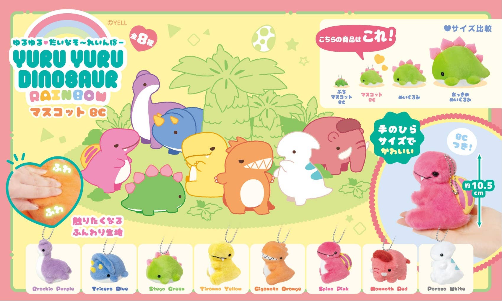 From the house of BCmini, we bring you the delightful Dinosaur Rainbow Plush. Standing at 8 inches, this plush toy is designed to be a child's best friend. It embodies the vibrant colors of the rainbow, making it an attractive and appealing addition to any child's toy collection. As a trusted family-owned brand since 1977, we ensure our products bring joy and comfort to your little ones. With a wide selection of Japanese miniatures, pens, plush, squishes, stickers, and more, BCmini is committed to offering high-quality, fun, and unique products for your family.