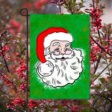 Decorate for the season and welcome friends and family to the home with this suede garden flag. It features Santa himself with his sack of presents thrown over his shoulder and mischievous expression. The word “Believe” greets friends and family as they step through the door. Artwork is heat transferred onto the sun-blocking material so that it is easily viewed from both sides. The weatherproof poly-suede will not fray or fade with continued outdoor use. This flag features a sleeve for use with any standard flagpole or stand, sold separately.