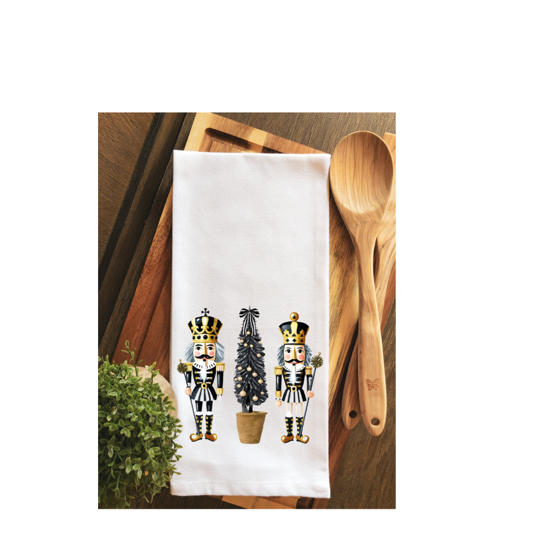 Our Sugarplum Nutcracker Tea Towel is full of whimsy and the perfect home decor accent piece for your kitchen during the holidays!
