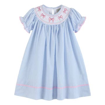 Product Details: - Three Colorways: pink, light blue, white. - Dress Length: Knee length (please refer to the sizing charts for measurements). - Sleeve Length: Short sleeves. - Fit Info: Fits true to size for the respective age group. - For example, Aisabobo size 8 is designed to fit well for an average 8-year-old girl in terms of height, chest, and waist measurements in her age group. This size may also suit a smaller 9-year-old girl or a taller 7-year-old girl. Similarly, Aisabobo size 9 may fit a smaller 10-year-old girl or a taller 8-year-old girl. - Lined. - Button fastenings along front with tie. - Elastic waistband on back waistline for extra room to stretch.