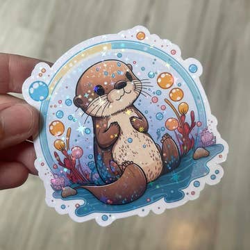 For fans of otters and ocean vibes, great for decorating laptops, sketchbooks, water bottles, or anything your heart desires! - Roughly 3" square - Matte - Vinyl - Durable, UV Protected, and Waterproof