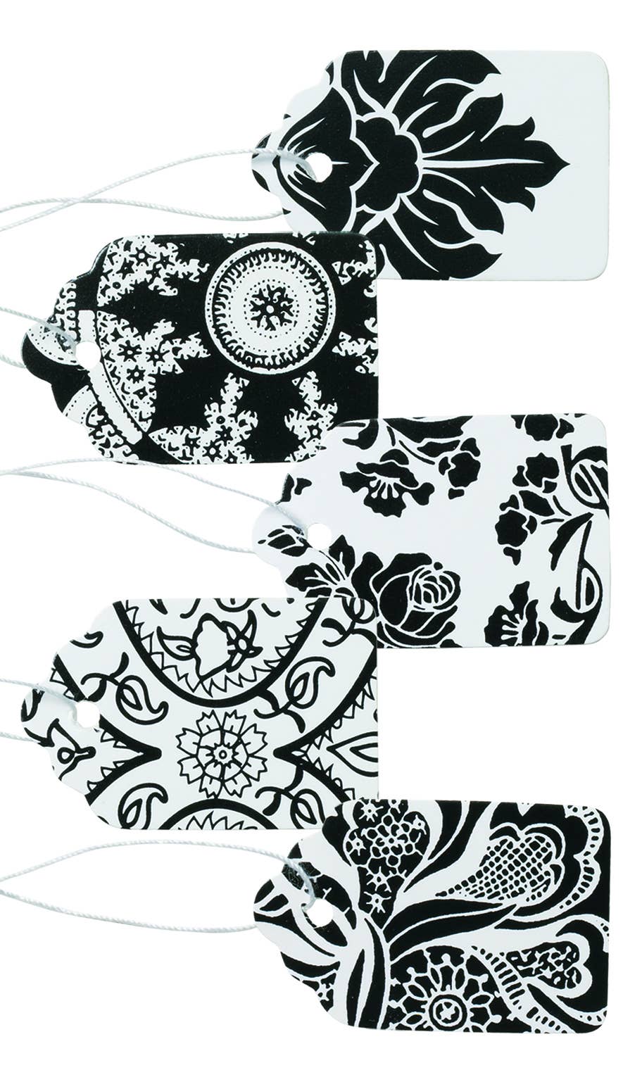 Small - 1½”H x 1”W Large - 3¼”H x 2”W Store Supply Warehouse offers Designer Strung Price Tags to help you create a polished and cohesive look for your store. These stylish tags not only display your retail prices with flair but also add a decorative touch to your merchandise. Available in a variety of elegant designs, including scalloped edges and distinctive patterns like Distressed Damask, Khaki Kraft, Leopard Brown, and Cocoa Scripts, these tags bring a professional yet stylish finish to your displays. Pair them with our coordinating bags to complete your merchandising presentation and enhance your store’s aesthetic. Sold in packs of 500.