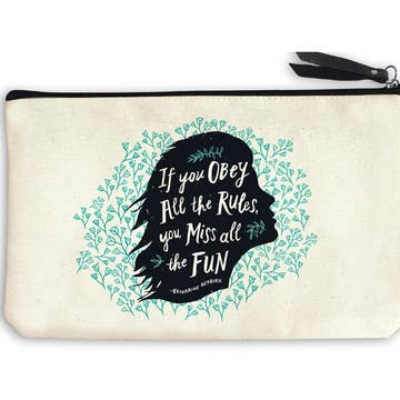 In my defense, I was left unattended... what a great opportunity to shop these bags! This zipper bag is an iconic mainstay in the Pretty Clever bag collection, especially for customers of gift shops, bookstores, spas and humor-loving people of all generations. A practical, humorous and pretty bag, it is hand sewn and painted, measures 9x7 inches and features a sturdy zipper and pull. It is the perfect size for collecting and stashing every day items. With two color options, this bag appeals to a wide variety of customers. One style has a bold and unique splash of color, emphasizing the inspiring words and graphics. The second option is neutral and chill, with black lettering on the linen-colored canvas. We are passionate about the power of words, whimsy, and humor, which is why we have included inspiring words on this bag. Features: * Handcrafted and hand-sewn * Made from strong linen canvas duck cloth * Available in 9 inches wide and 7 inches high * Perfect for gifting