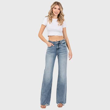 Embrace your everyday with the Quartet High Rise Boot Cut jeans from Mica Denim. These jeans feature a classic aesthetic with a contemporary fit that's perfect for the modern woman. Crafted from a comfortable blend of 67% cotton, 3% rayon, 28% poly, and 2% span, these jeans are machine-washable for easy care. With a front rise of 10 1/4" and an inseam of 33", they offer a flattering silhouette that's as versatile as it is stylish. Infused with the laid-back California cool spirit of Mica Denim, these jeans are an essential addition to your denim collection.