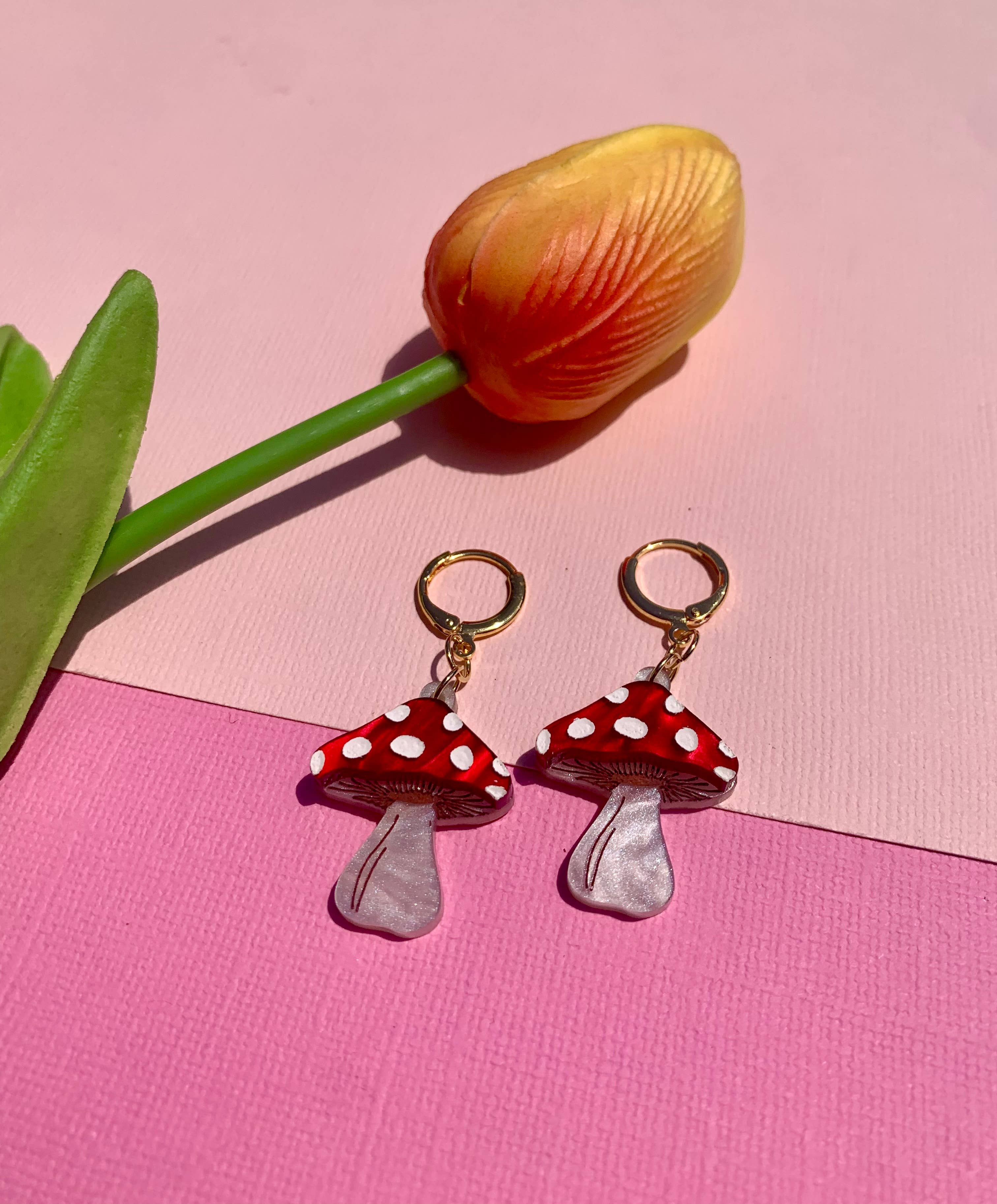3D Enamel Cute Mushroom Huggie Hoop Earrings