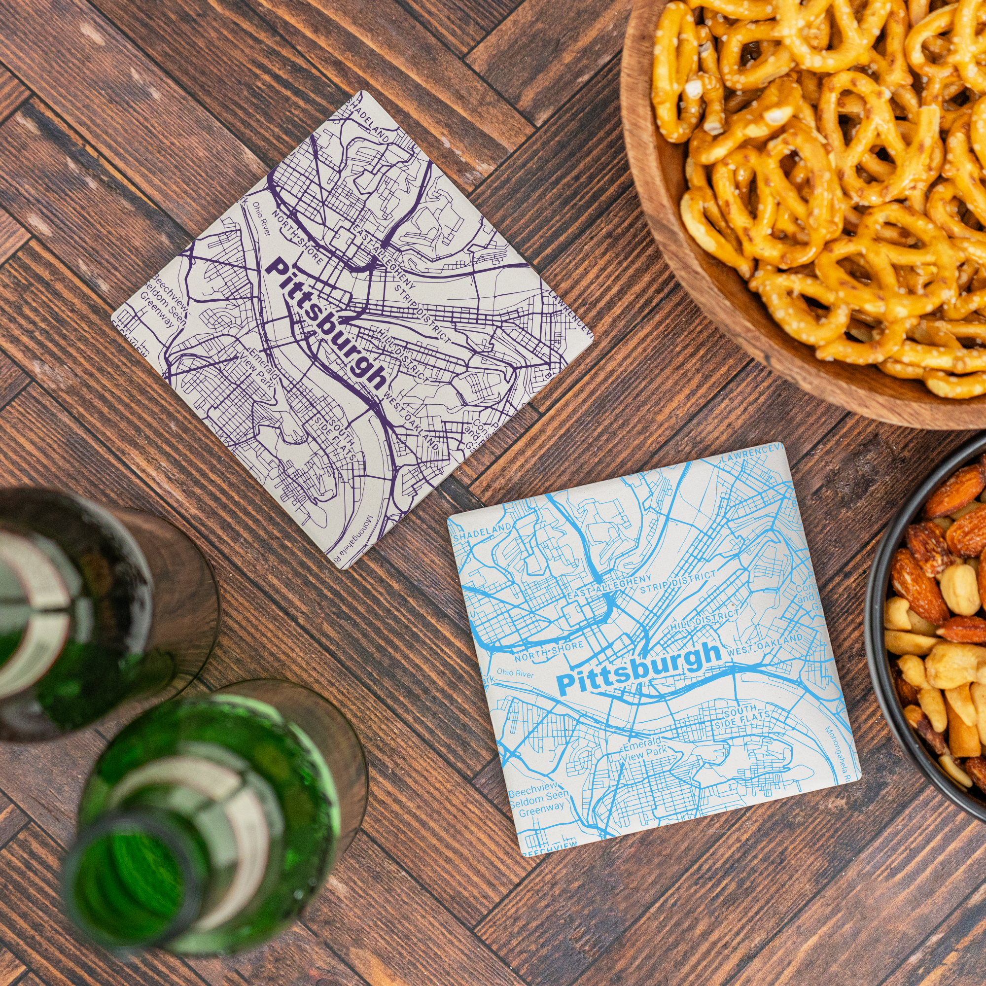 Pittsburgh PA Map - UV Printed Slate Coasters