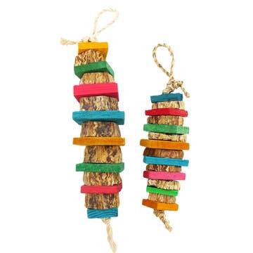 One of the only chewable toys available that are an appropriate size for HUGE macaws, Moluccan cockatoos and the like. Often unavailable so I purchase whenever I can find it.