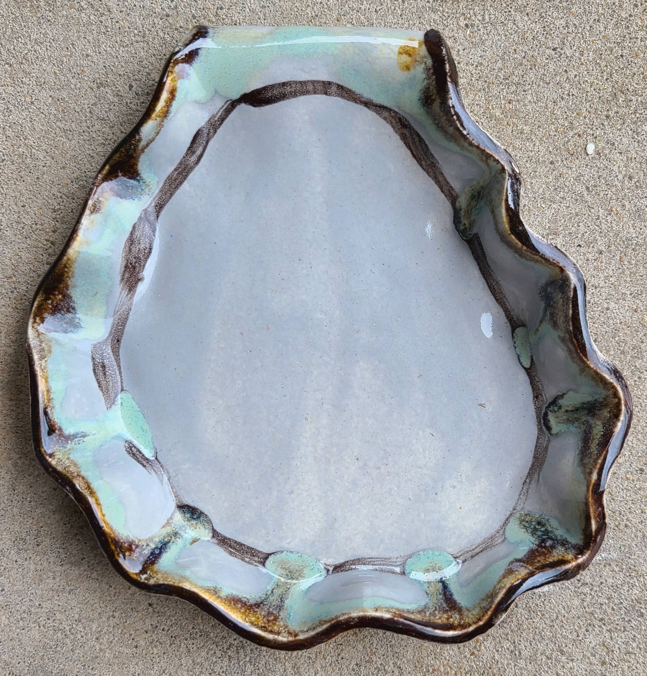 Handmade in Colorado, this has multiple uses! Perfect to use in the kitchen as a spoon rest, or to hold your favorite soap, the spout makes it easy to drain water out of the tray. Speckled clay glazed white. Dishwasher, microwave, and oven safe. Measures between 4.5 - 5 inches in diameter. Please include a notation in your order if you prefer larger or smaller. Wheel thrown, hand trimmed, bisque fired, dipped in lead-free glaze, and fired to 2167 F. Every piece is unique. There are small variations in each piece, as they are handmade.