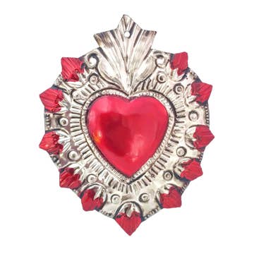 MXAL-H1R- Eclectic Mexican Tin Heart Sculpture