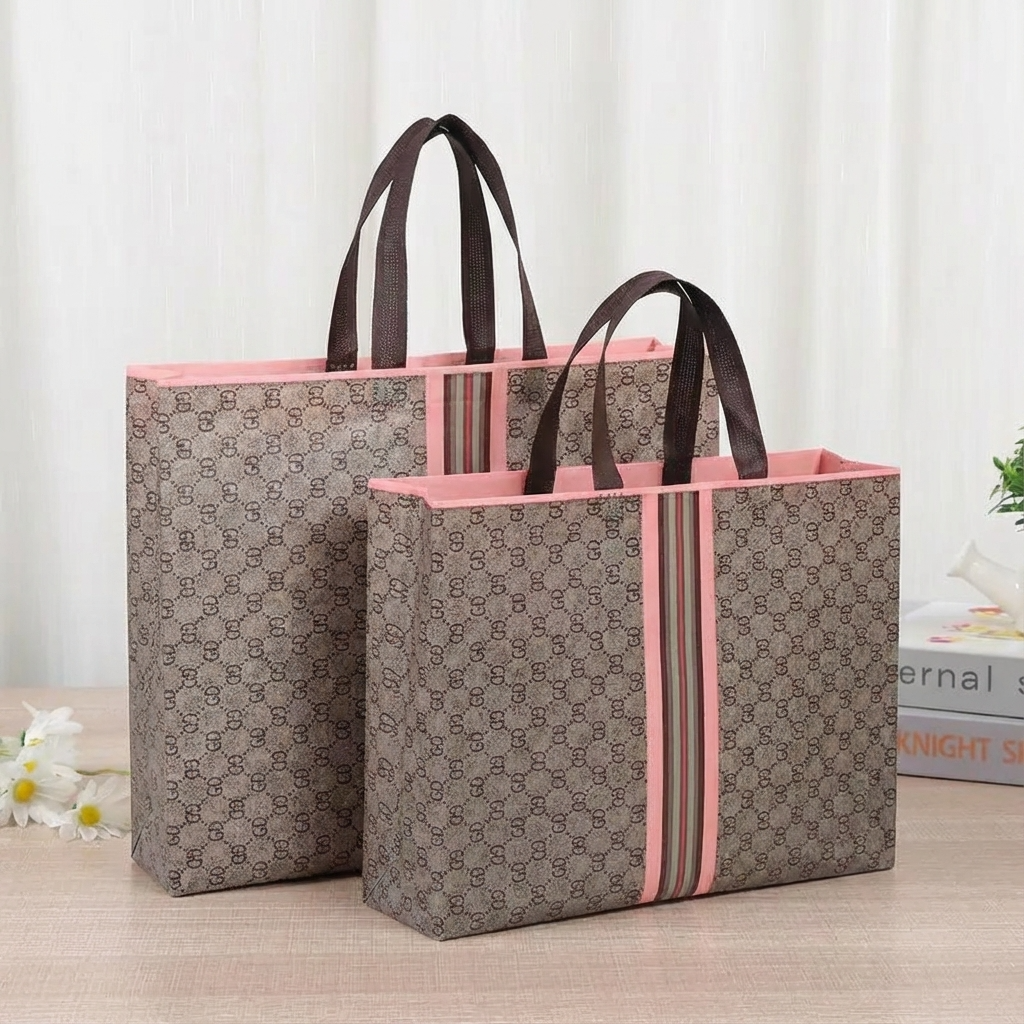 50pcs, 4 Sizes Luxury Grid Pink Stripes Non-woven Gift Bag