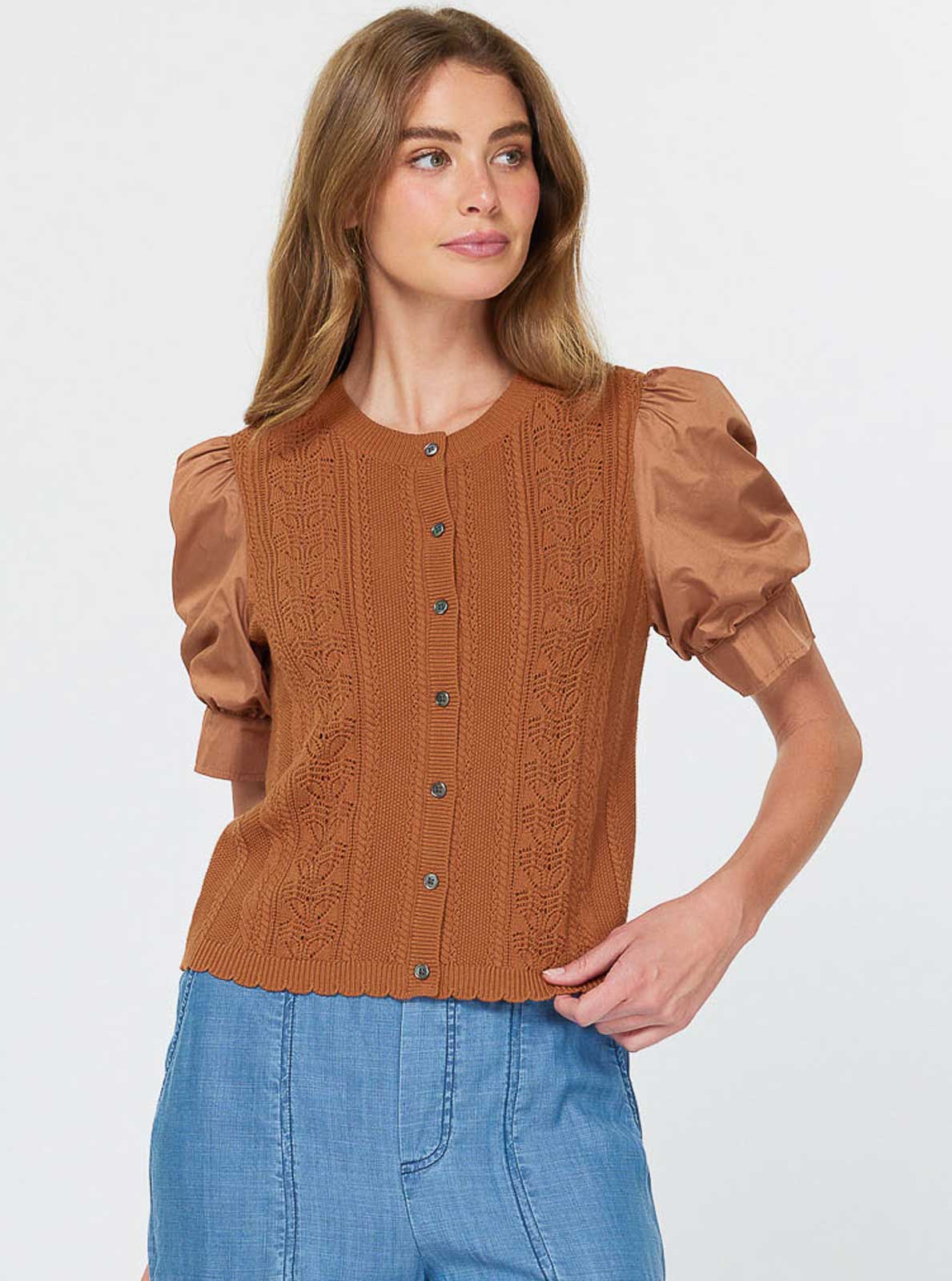 Shirts collar button-down short-sleeve shirts with crochet detail