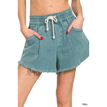 NP70123-High-Waist Washed Twill Shorts